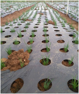 2018年7月16日至2018年9月10日的生长周期里,红葱种植户杨老板在竞技宝电竞集团特派员的指导下,其红葱种植基地进行竞技宝电竞产品应用示范,每亩按照80KG腐熟蛋白生物有机肥+40KG调酸补钙农用微生物菌剂+2KG农益健100农用微生物菌剂的用量,在耕地前将三个产品充分拌匀,均匀撒施到示范地块,接着用耕地机进行耕地,然后理墒盖膜进行播种。